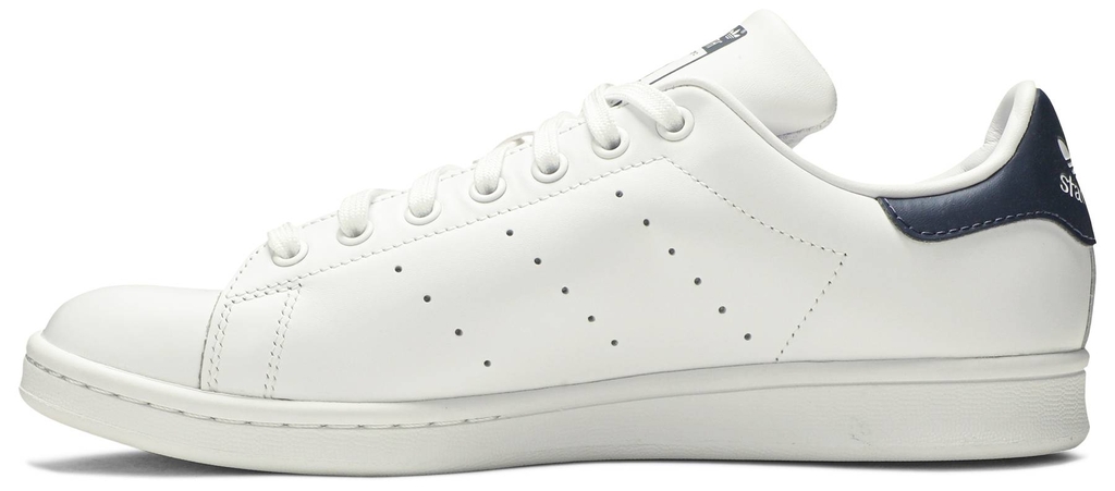 Đôi adidas Stan Smith mang tính biểu tượng làm nổi bật kết cấu hai tông màu đúng với thiết kế ban đầu của những năm 1970. Phần trên bằng da tối giản được hoàn thiện bằng màu Core White, bổ sung với dây buộc màu trắng đồng điệu và ba sọc đục lỗ. Các điểm nhấn tương phản của màu xanh nước biển xuất hiện thông qua biểu tượng Stan Smith trên lưỡi gà và tab gót có thương hiệu hình trefoil. Một chiếc cupsole cao su màu trắng giữ cố định phần trên thấp.