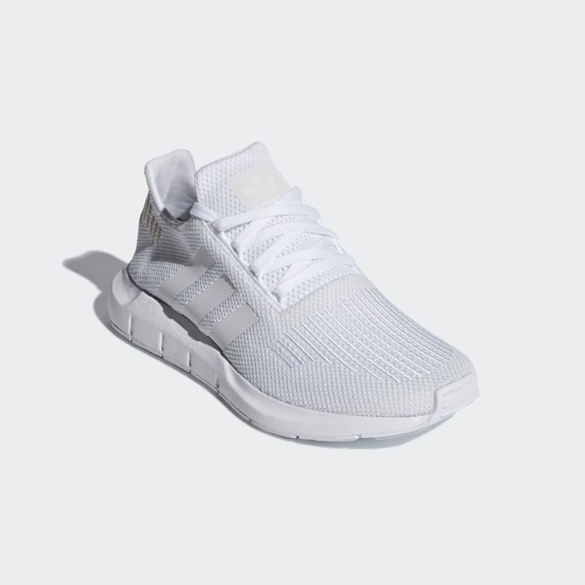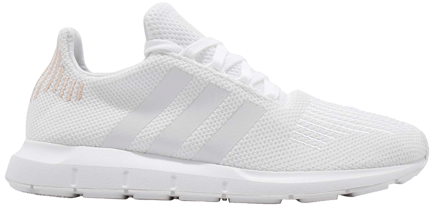 Adidas Swift Run kết nối quá khứ của thương hiệu với hiện tại của nó trong một mặt tiền lấy cảm hứng từ retro với những cải tiến hiện đại. Được cập nhật ở dạng đơn sắc, phiên bản 'All White' này thích ứng với bàn chân trong một chiếc giày đan một mảnh với Ba sọc mang tính biểu tượng, hình thêu ma cà rồng và gót cho cấu trúc và biểu tượng lưỡi Trefoil đồng điệu. Đế giữa và đế ngoài bằng cao su có gai EVA tương ứng hoàn thiện vẻ ngoài sắc nét.