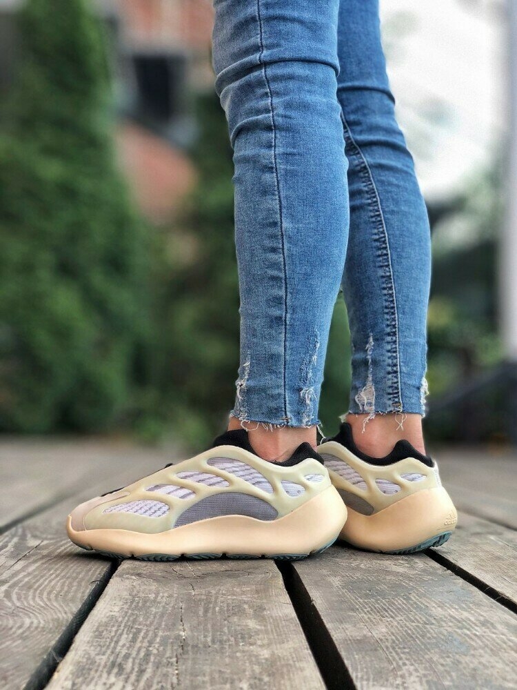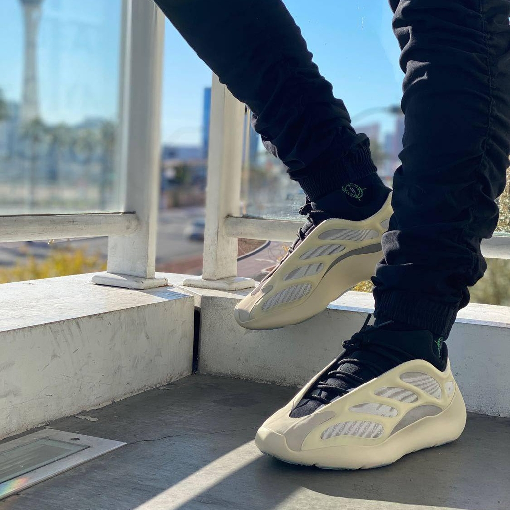 Thoát khỏi kiểu nghiêng lấy cảm hứng từ phong cách retro trước đây của mình, Kanye West khám phá thiết kế hướng tới tương lai với adidas Yeezy 700 V3. Ra mắt vào tháng 12 năm 2019, phiên bản Azael này nhận được một bootie cao su tổng hợp màu đen với cổ áo có khía và lớp lót dệt sọc được bao bọc trong một lồng làm việc mở, điêu khắc. Tích hợp viền cung cấp khóa truyền thống.