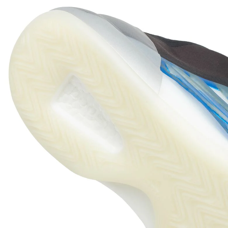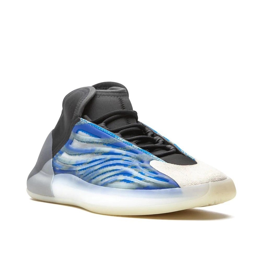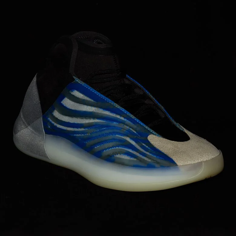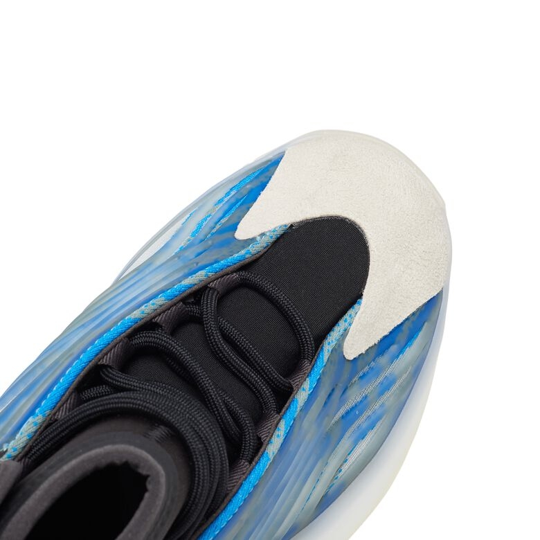 Adidas Yeezy Basketball ‘Frozen Blue’ làm nổi bật màu sắc nổi bật trên phiên bản giày có vòng đệm tương lai của Kanye West. Mặt trên có cấu trúc dệt kim được gia cố bằng lớp phủ RPU, các đường lượn sóng nổi lên của chúng có màu xanh dương rực rỡ. Lớp đệm bổ sung được thêm vào cổ áo cao su tổng hợp màu đen, được tăng cường bằng bộ đếm gót liền mạch kéo dài đến đế giữa của Boost có chiều dài đầy đủ được bọc trong TPU bán trong mờ. Dưới bàn chân, đế ngoài bằng cao su kéo xương cá mang lại độ bám tối ưu trên các mặt sân gỗ cứng.