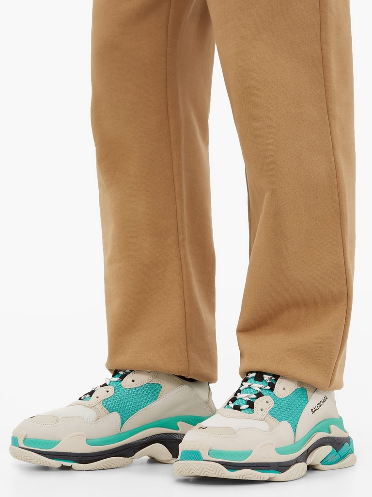 Là nhà tiên phong thời trang cao cấp trong phong trào giày thể thao đế bệt, Balenciaga Triple S Trainer đã tạo nên tên tuổi của mình nhờ bộ đế ba lớp đặc trưng của nó. Được đệm nhiều lớp và nhiều lớp, hình bóng chunky này đã trở thành 1 huyền thoại. Hình thêu ở ngón chân cho biết kích thước và chi tiết trang trí trên toàn bộ trang phục làm tăng vẻ độc đáo.