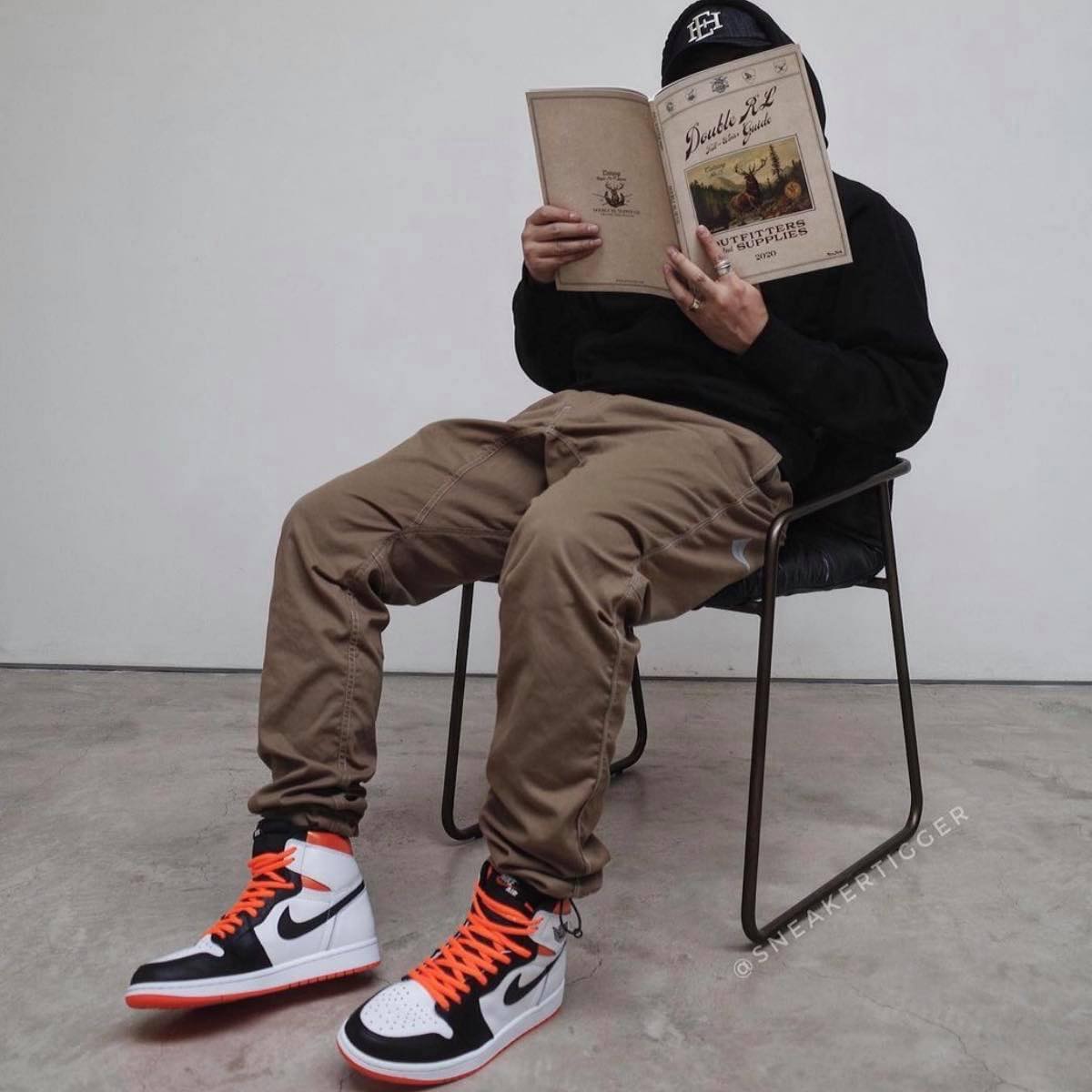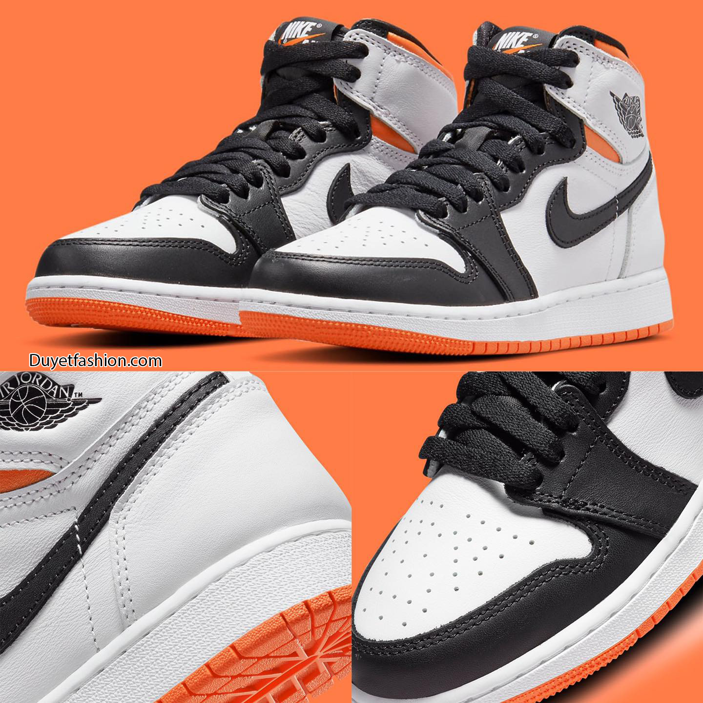 Phối màu này rất đẹp, với màu chủ đạo là 'trắng' và 'đen', điểm nổi bất nhất là sắc cam tươi chói ở phần cổ giày và bọc đế ngoài. Mặc dù chưa có hình ảnh chính thức để xác định dây buộc màu xam, nhưng màu dây “Electro Orange” thật sự nổi bật và tinh tế trên phối màu này.