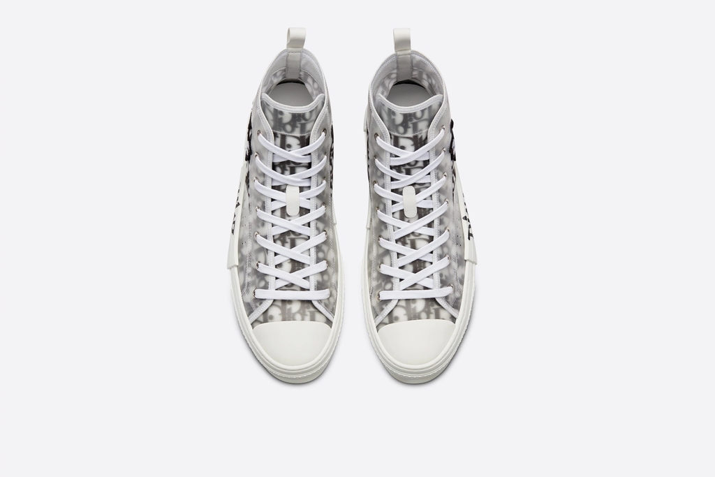 Giày sneaker cao cổ B23 là một cách giải thích đầy phong cách của hình dáng giày thể thao cổ điển. Được làm bằng lưới trong suốt với họa tiết Dior Oblique mang tính biểu tượng, chiếc mũ cao có hình con ong thêu DIOR AND SHAWN ở bên hông và logo trên đế. Vòng sau bằng cao su trắng bổ sung cho dây buộc màu trắng và đế cao su trắng có các chi tiết ghép và cấu trúc.