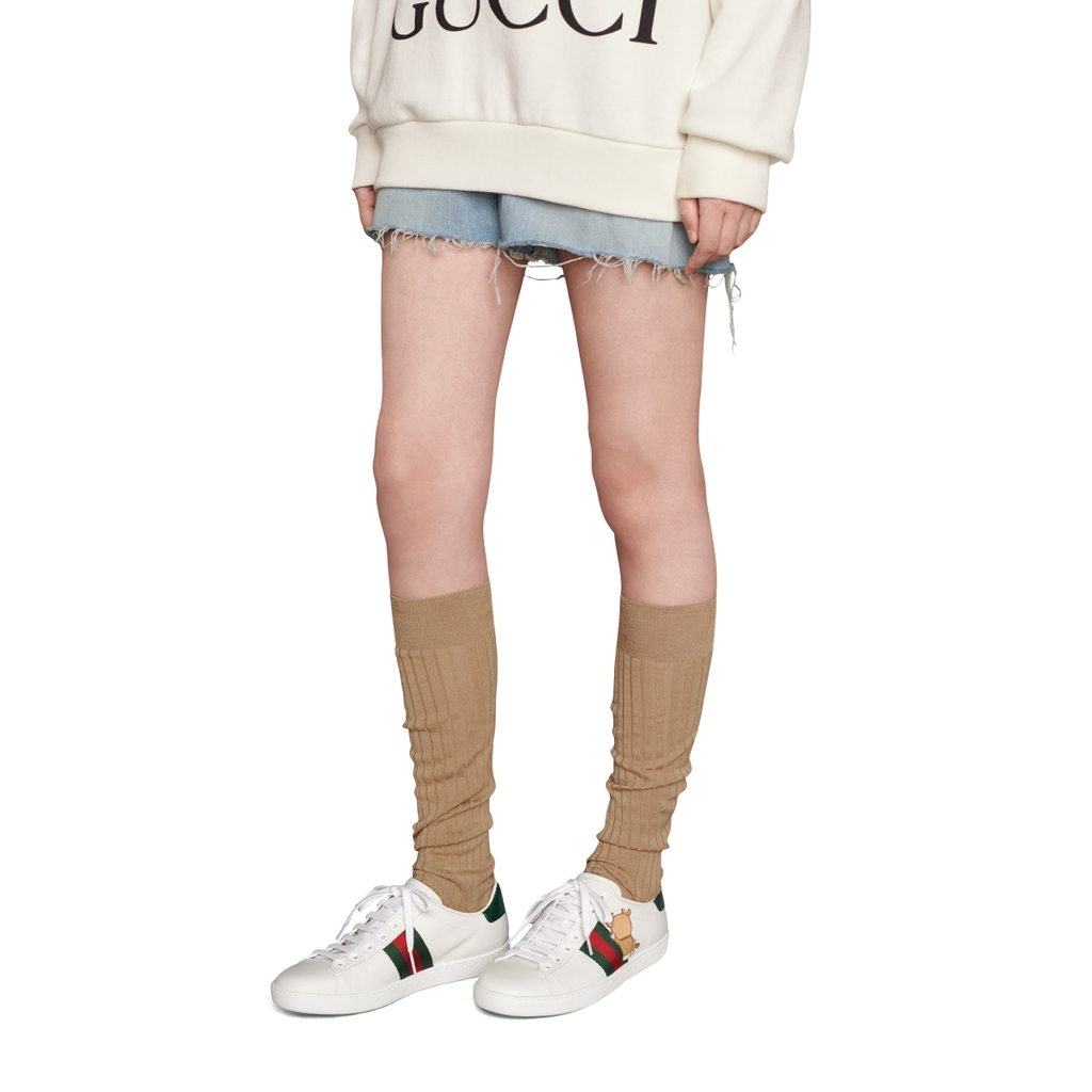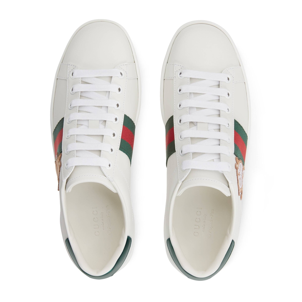 Trên đây là mẫu GUCCi ACE với những nét đặc trưng không thay đổi nhiều của dòng giày ACE nổi tiếng củ GUCCi với họa tiết chú mèo máy được thêu chi tiết tại mặt bên.