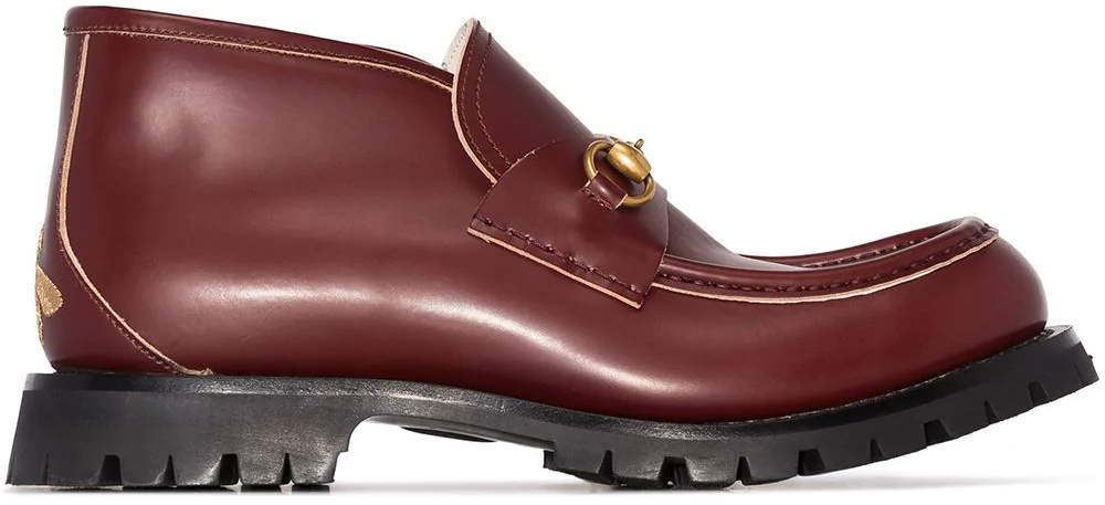 Gucci's classic loafers get a modern update. Set on chunky rudged soles that'll weather the most bumpy of terrain, they're punctuated with a sleek hoesebit detail. You have to switch it up sometimes.