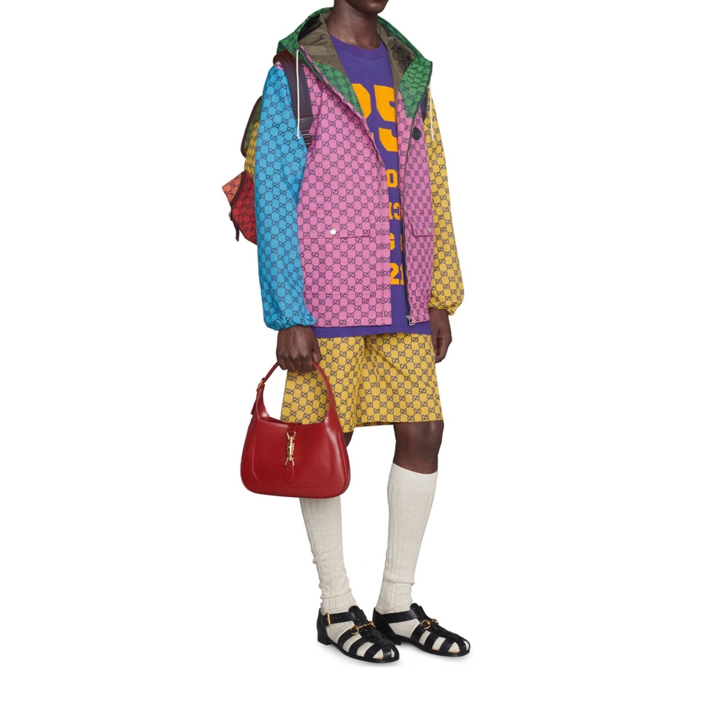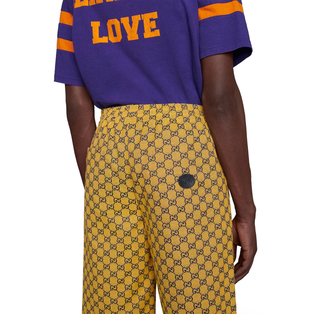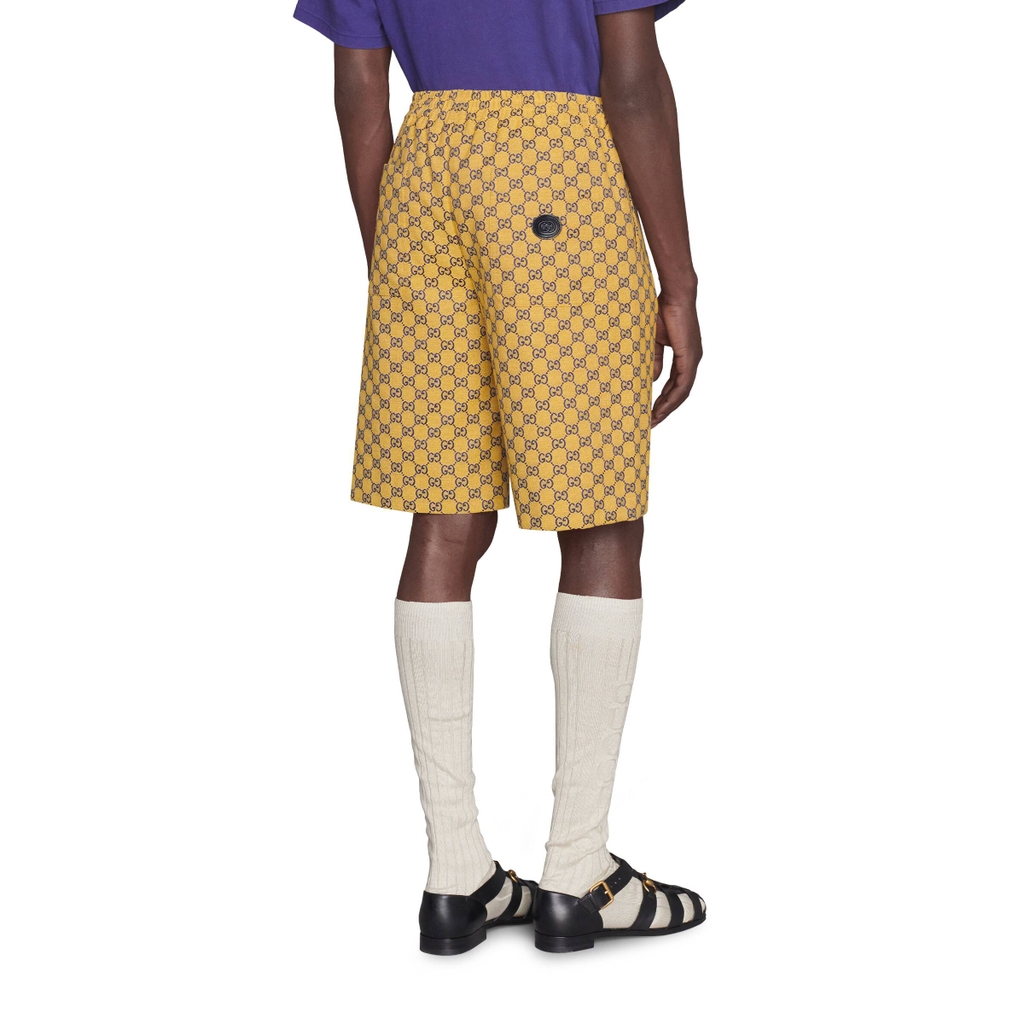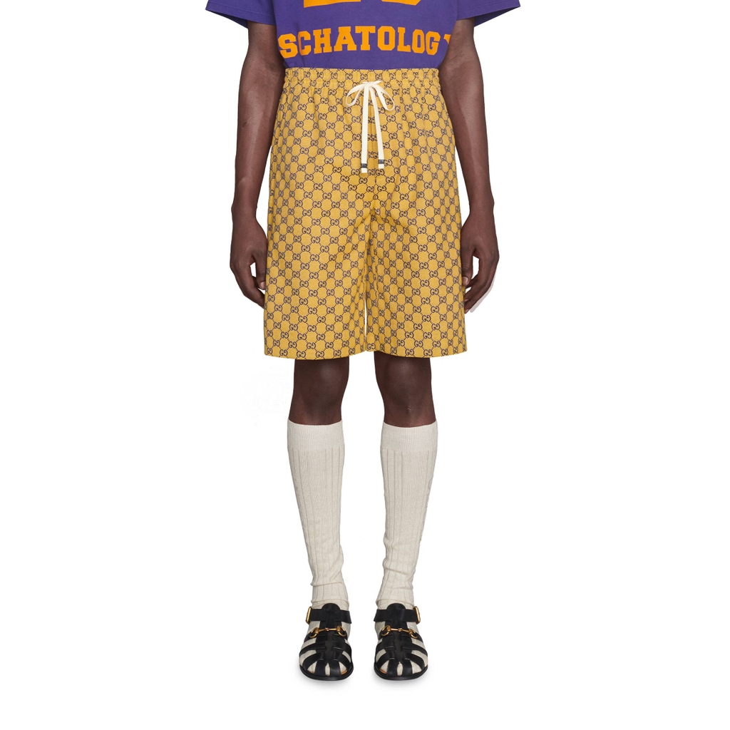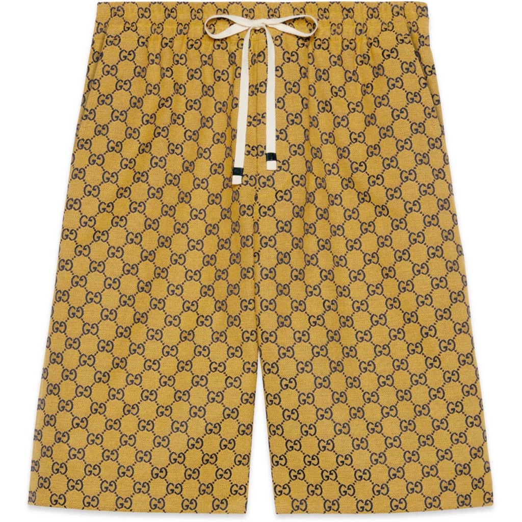 Nắm bắt những khả năng mới nằm trong các biến thể của kho lưu trữ Gucci, các sản phẩm khác nhau mang đến một phong cách mới trên họa tiết rhombi GG mang tính biểu tượng. Đã là một sự phát triển của biểu trưng House, nó một lần nữa được mô phỏng lại bằng một loạt các màu sắc tươi sáng — một chủ đề đã trở thành đồng nghĩa với tầm nhìn của Giám đốc Sáng tạo. Ở đây nó được nhìn thấy trên một chiếc quần đùi vải màu vàng.