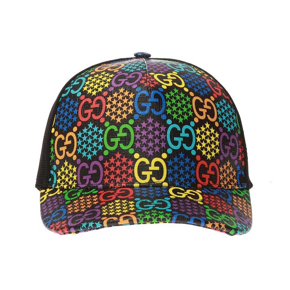 Lấy nét hiện đại dựa trên họa tiết GG lịch sử, họa tiết GG Psychedelic trang trí các hình dạng cổ điển xuyên suốt bộ sưu tập Cruise 2020, bao gồm cả chiếc mũ bóng chày hiệu ứng ảnh ba chiều này. Đóng móc và vòng có thể điều chỉnh.