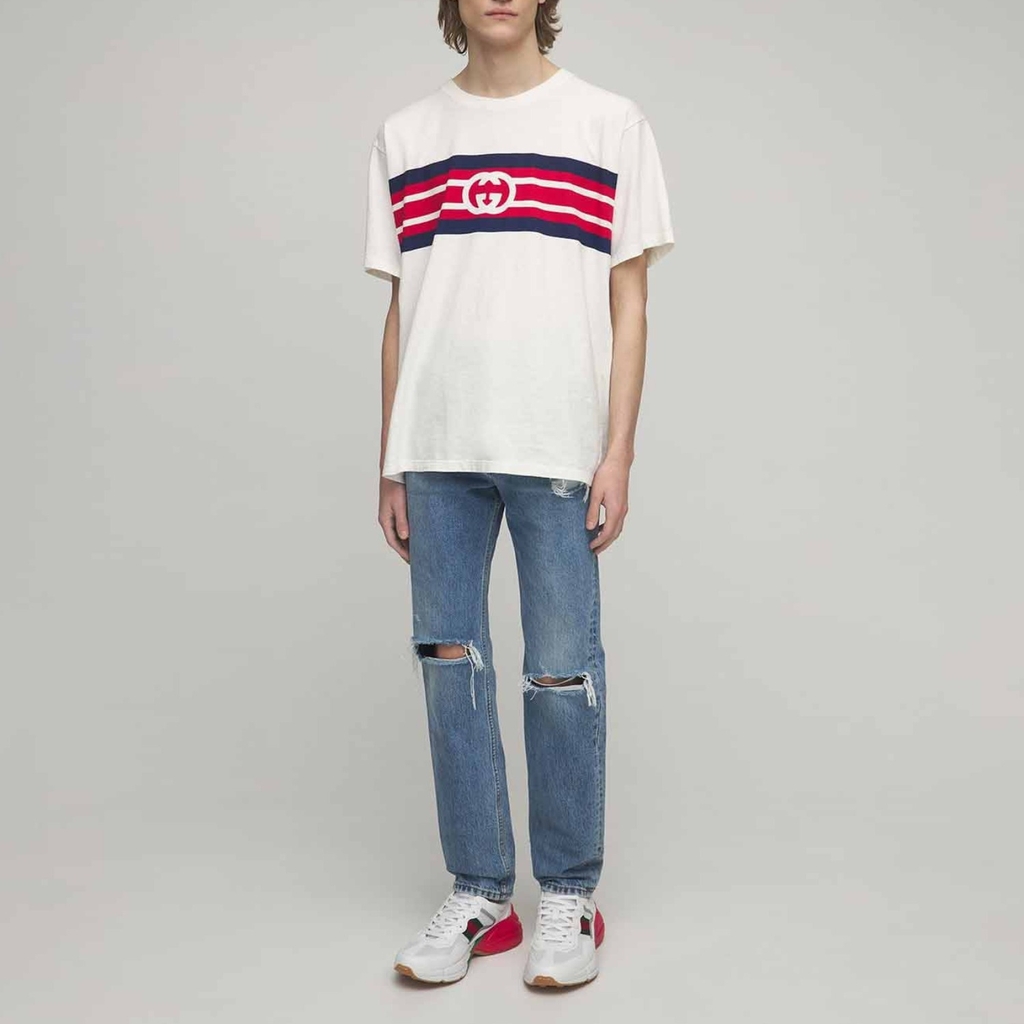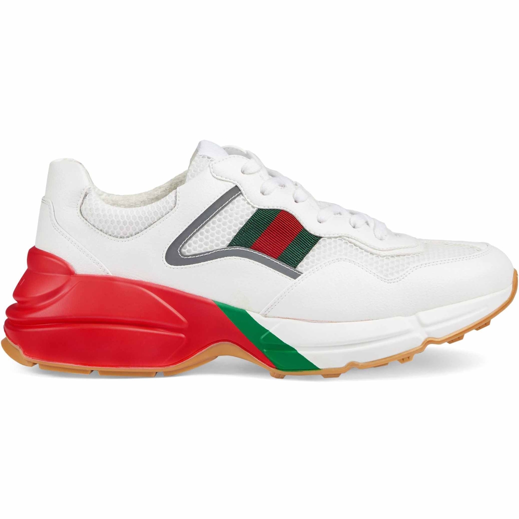 Được thiết kế với đế dày và kết cấu hầm hố, đôi giày thể thao này mang âm hưởng hoài cổ từ chất liệu da với logo Gucci cổ điển lấy cảm hứng từ những bản in từ những năm 1980.