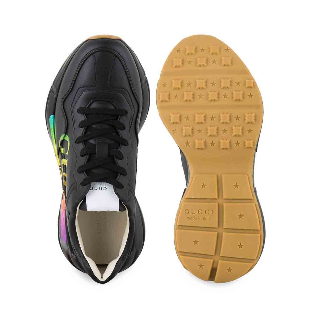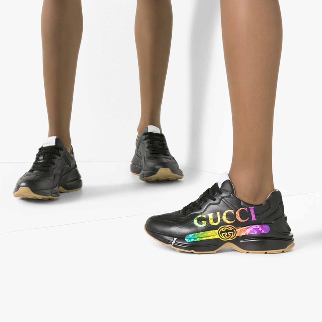 Được thiết kế với đế dày và kết cấu hầm hố, đôi giày thể thao này mang âm hưởng hoài cổ từ chất liệu da với logo Gucci cổ điển lấy cảm hứng từ những bản in từ những năm 1980.