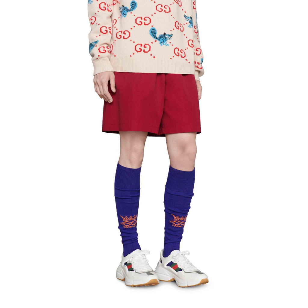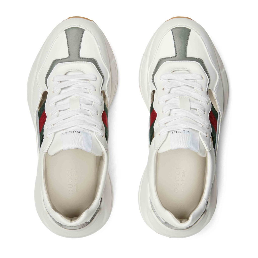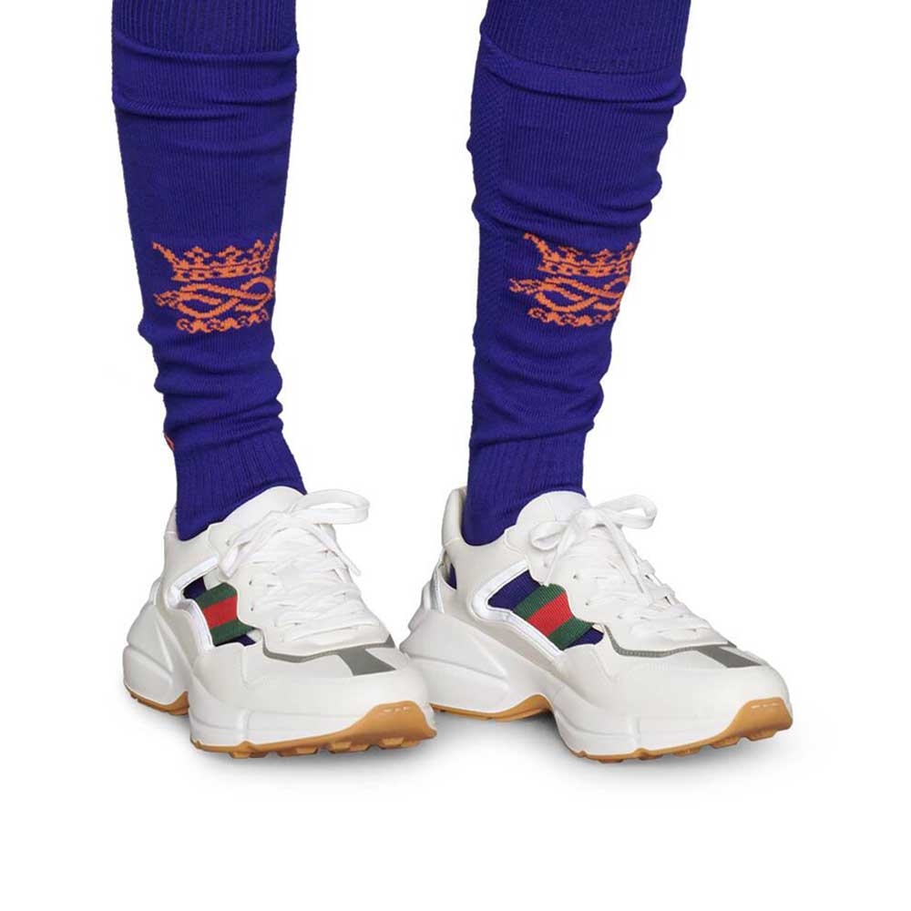 Được thiết kế với đế dày và kết cấu hầm hố, đôi giày thể thao này mang âm hưởng hoài cổ từ chất liệu da với logo Gucci cổ điển lấy cảm hứng từ những bản in từ những năm 1980.