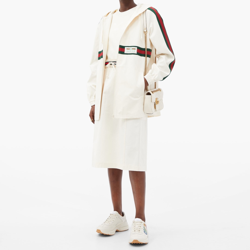 Được thiết kế với đế dày và kết cấu hầm hố, đôi giày thể thao này mang âm hưởng hoài cổ từ chất liệu da với logo Gucci cổ điển lấy cảm hứng từ những bản in từ những năm 1980.