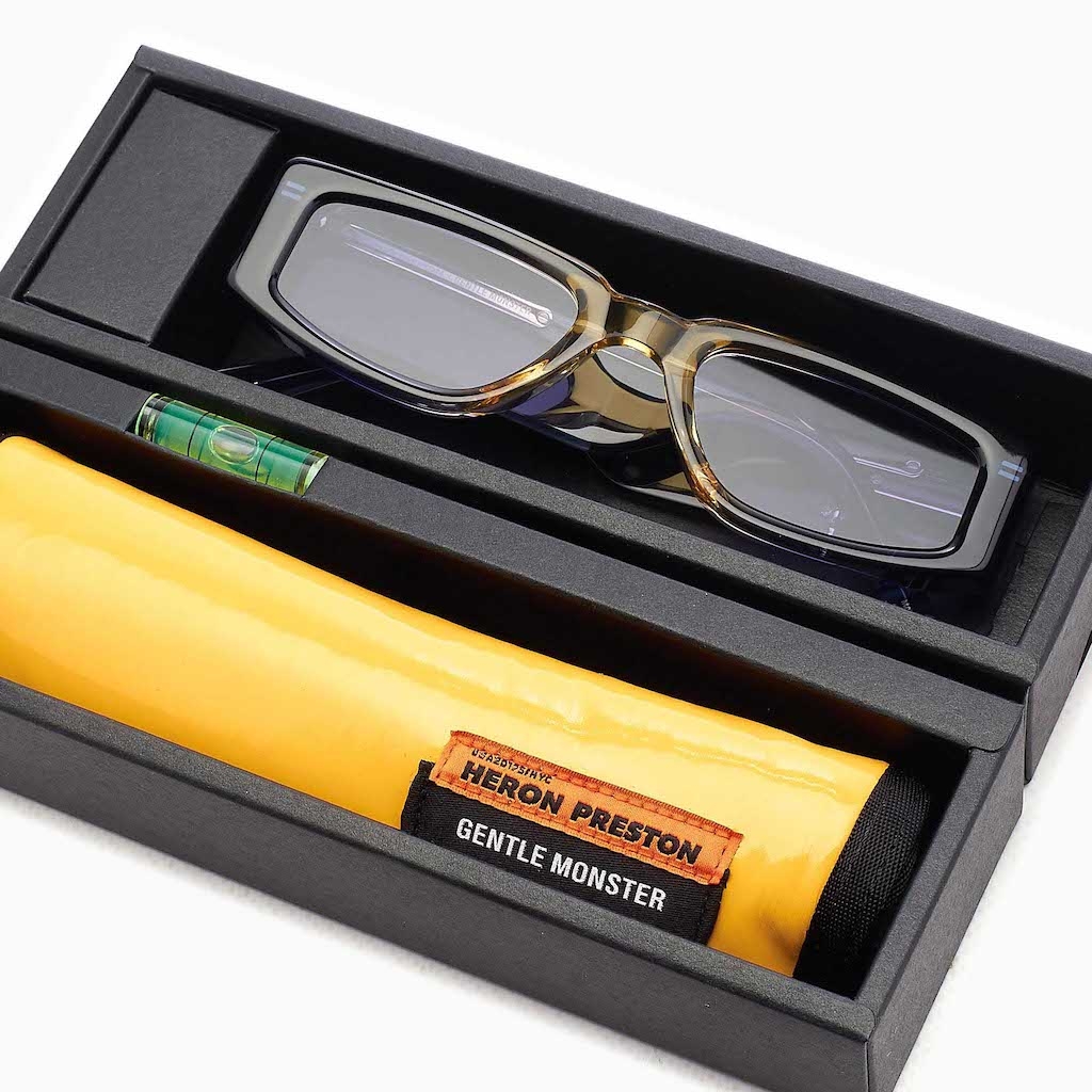Được chế tạo với sự hợp tác của Heron Preston, Level 0 01 là một gọng kính acetate bóng hình chữ nhật với tròng kính đen được bảo vệ 99,9% khỏi tia cực tím. Chiếc kính râm rộng và chắc chắn được làm nổi bật bởi logo đậm và các chi tiết đẳng cấp, kết hợp đặc điểm nhận dạng của cả hai thương hiệu vào một thiết kế.