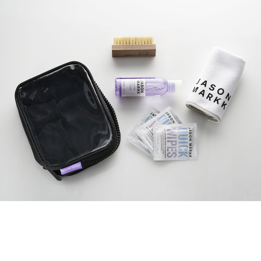 Bao gồm 1 khăn , 1 lọ vệ sinh , 1 bàn chải , 3 miếng lau giày cấp tốc thần thánh