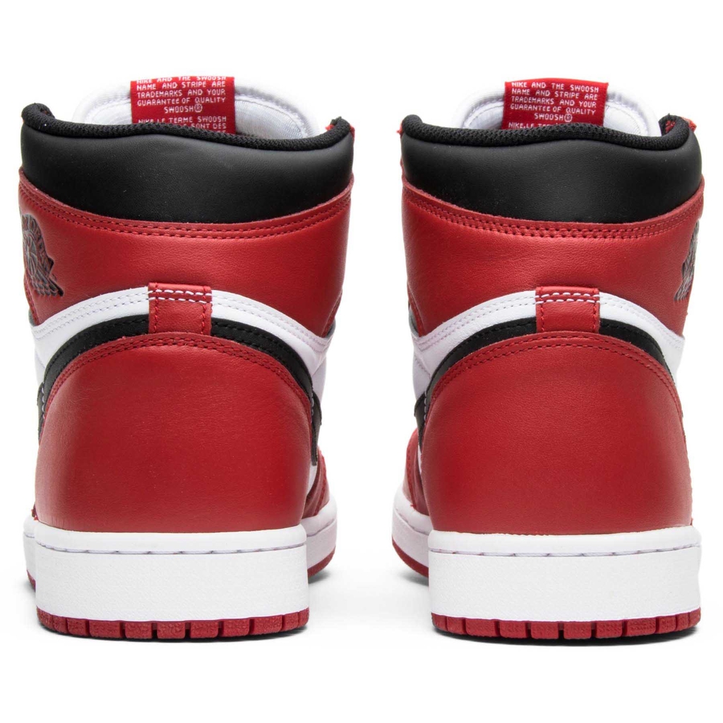 Phối màu Nike Air Jordan 1 Retro High OG 'Chicago' được thiết kế để tránh việc Jordan bị phạt 5.000 đô la mỗi trận từ NBA sau khi màu đen và đỏ ban đầu bị cấm. 'Chicago' lần đầu tiên được thiết kế lại vào năm 1994 và vẫn đúng với thiết kế năm 1985. Các bản retros tiếp theo đã được phát hành vào năm 2013 với những thay đổi nhỏ về thiết kế và một lần nữa vào năm 2015 với các chi tiết thương hiệu ban đầu: biểu tượng Nike Air trên lưỡi gà và gót chân sạch ban đầu không có logo Jumpman.