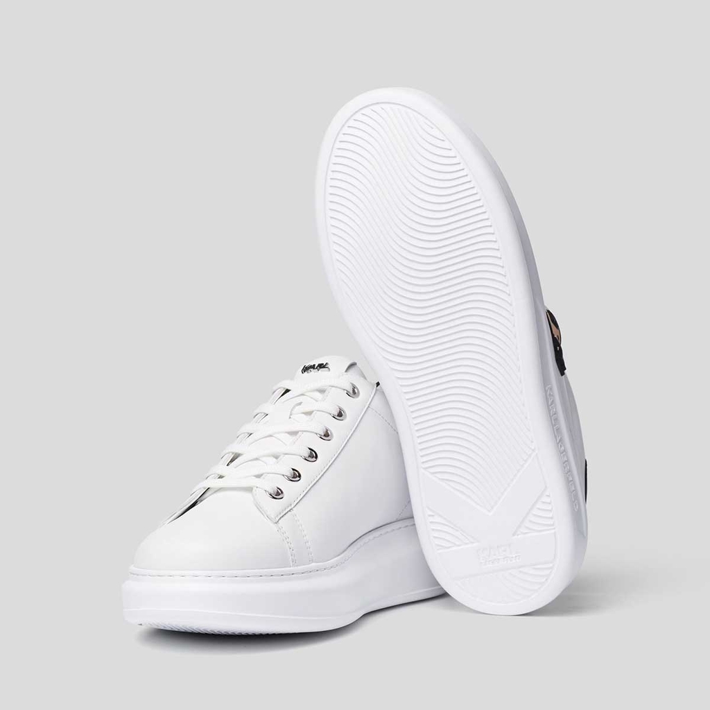 Phần gót nêm và miếng dán cao su hình họa biến một đôi giày thể thao tối giản thành một món đồ hiện đại.