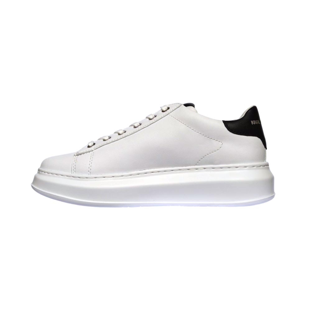 Phần gót nêm và miếng dán cao su hình họa biến một đôi giày thể thao tối giản thành một món đồ hiện đại.