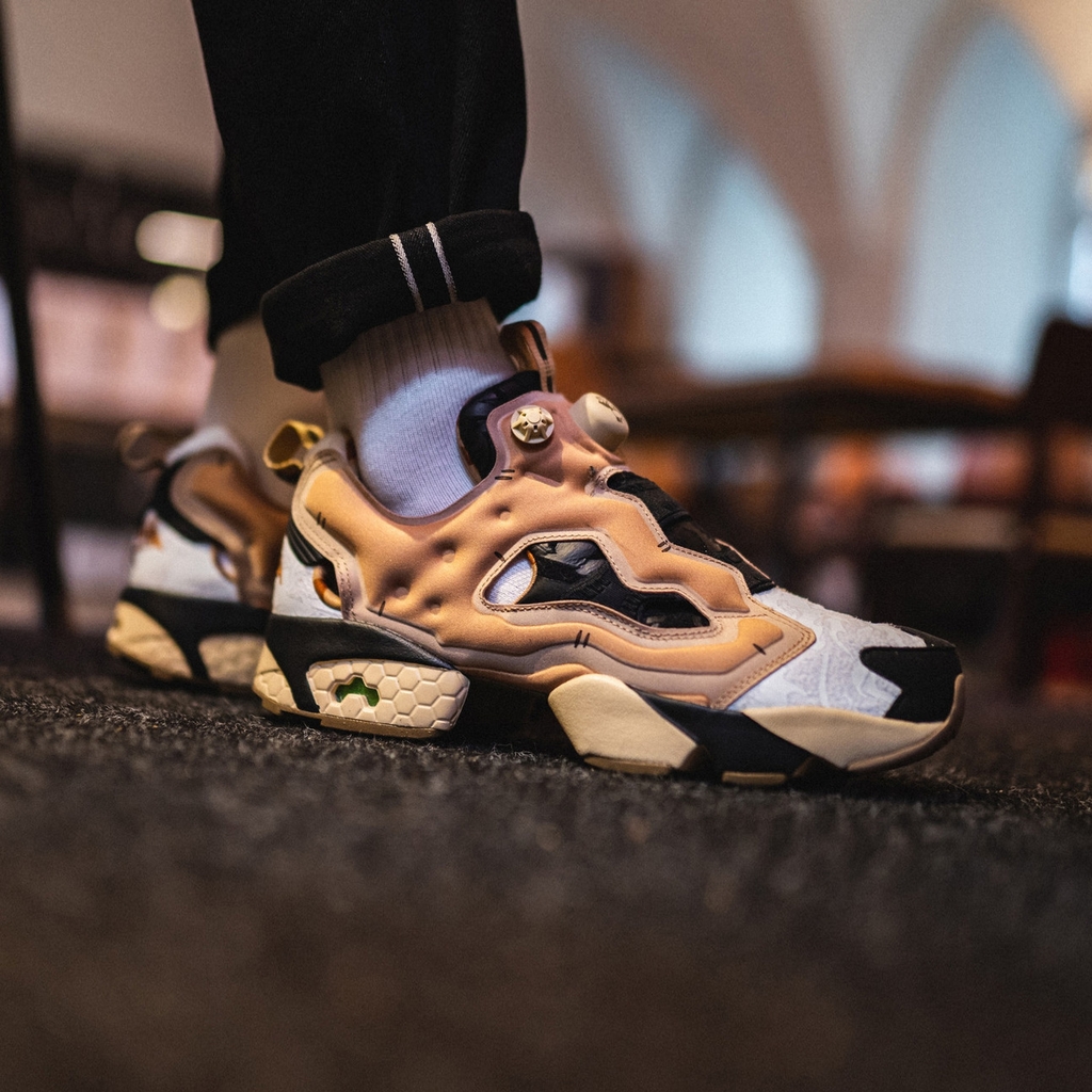 Kỷ niệm loạt phim hoạt hình DreamWorks, Kung Fu Panda x Reebok InstaPump Fury ‘Po’ có cách phối màu lấy cảm hứng từ nhân vật chính của nhượng quyền thương mại. Hình bóng không có dây buộc sử dụng phần trên bằng vải dệt màu trắng với mũi giày da lộn màu đen tương phản và da tổng hợp màu đen ở lưỡi gà. Tông màu be trung tính đáp xuống lồng bơm hơi và đế giữa tách rời. Thương hiệu Kung Fu Panda được khắc trên gót sau, trong khi đồ họa minh họa độc đáo tô điểm cho mỗi nút Pump.