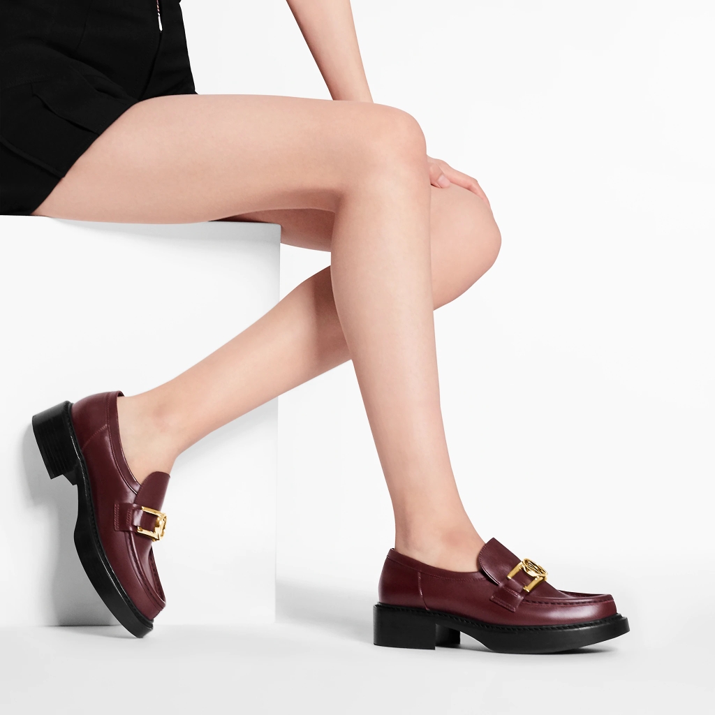 Giày lười Academy bằng da bê là sự tái hiện của Nicolas Ghesquière về phong cách nam tính cổ điển. Thiết kế theo xu hướng này có đế ngoài bằng da phóng đại và lớp lót thoải mái bằng cao su tổng hợp có đệm. Nó được hoàn thiện bằng phụ kiện LV Dauphine màu vàng, lấy cảm hứng từ móc cài của chiếc túi Dauphine mang tính biểu tượng.