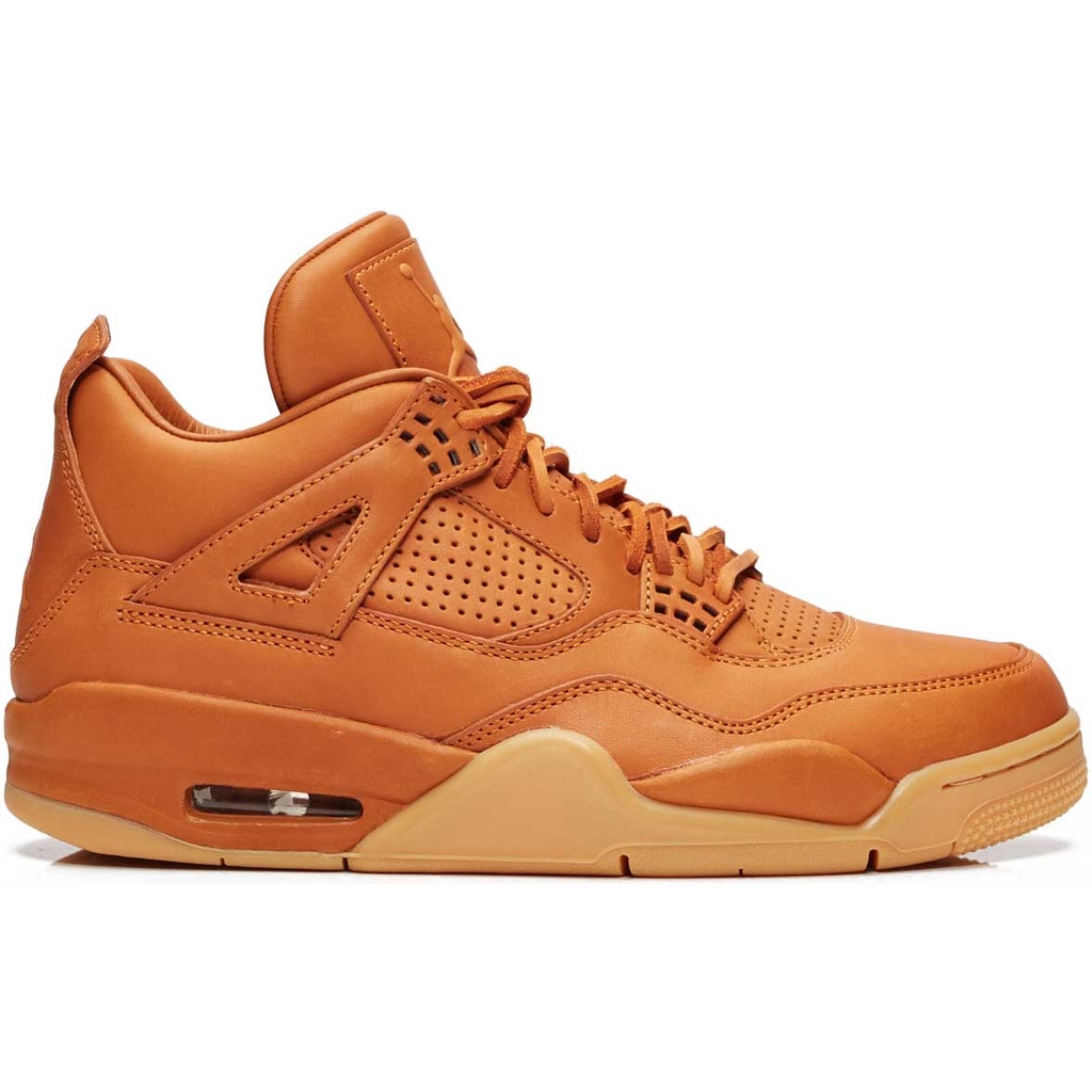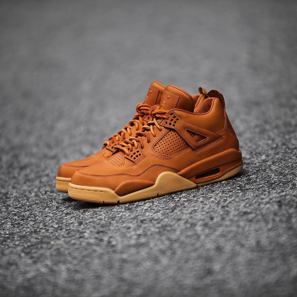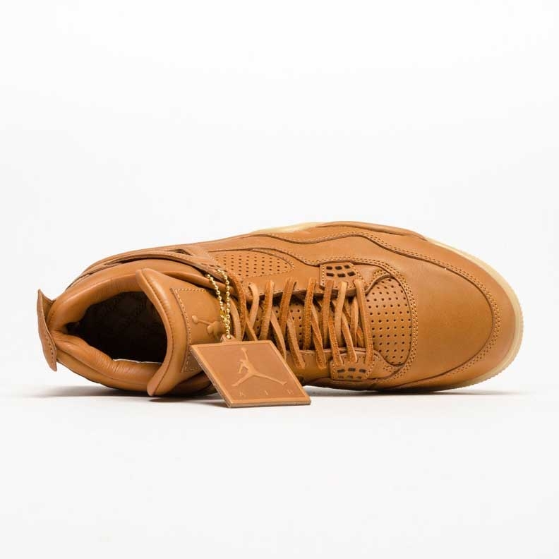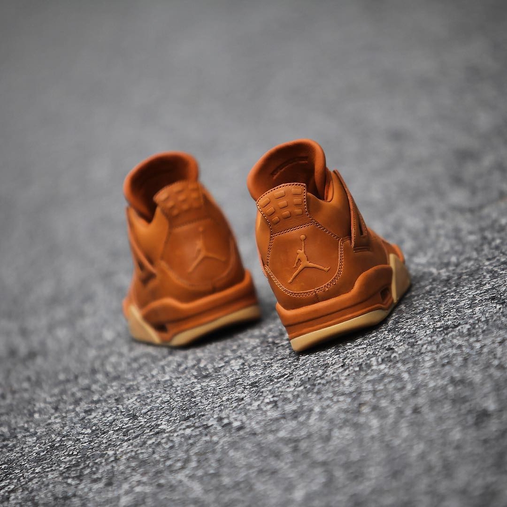 Nike Air Jordan 4 Premium 'Wheat' có phần trên bằng da cao cấp màu Ginger, dây buộc ton-sur-ton, tấm giữa bàn chân đục lỗ, bộ phận Nike Air và đế ngoài bằng kẹo cao su. Phát hành vào tháng 10 năm 2016.
