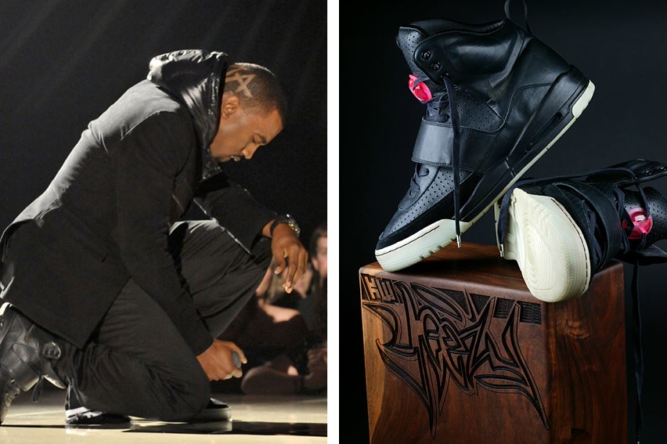 Trên đây là mẫu Nike Air Yeezy 1 mà nam rapper từng diện trên sân khấu Grammy lần thứ 50. Theo nhiều chuyên gia đều nhận định rằng, mẫu giày đã thay đổi rất nhiều khái niệm cũ về Sneaker, cũng như là tiền đề cho những sự hợp tác của những hãng thời trang với những nghệ sĩ. Đến hôm nay, không ai có thể phủ nhận được sự thành công nổi trội của Yeezy, các thiết kế mới luôn được bán hết ngay lập tức khi vừa ra mắt và được đẩy giá lên nhiều lần trong nền công nghiệp Resell.