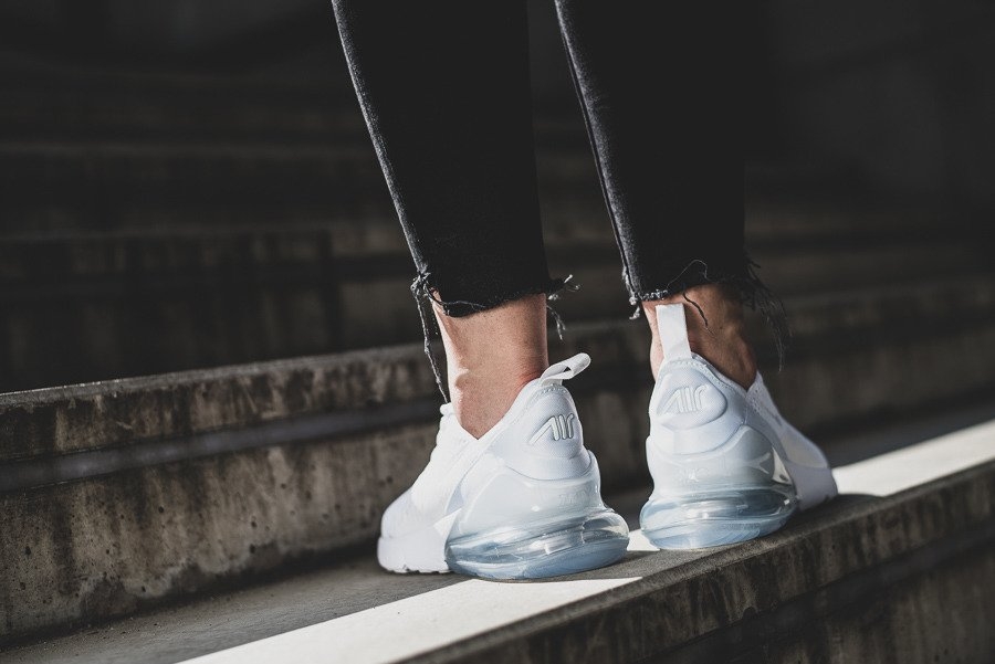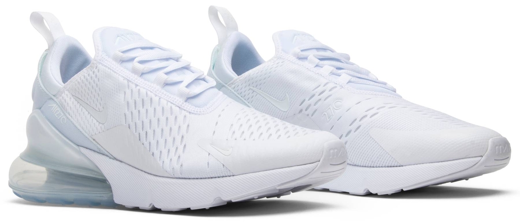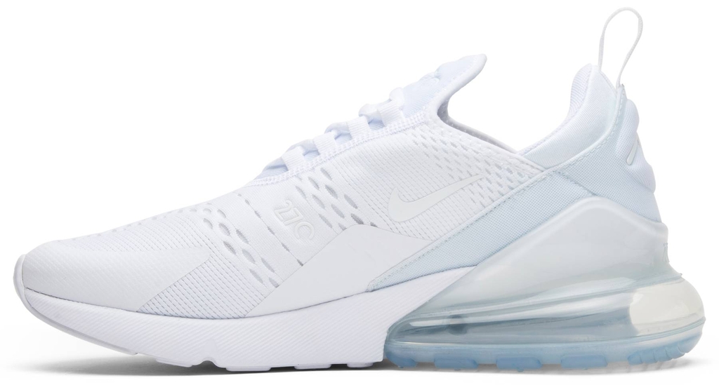 Tưởng tượng lại Air Max 180 và Air Max 93 thành một hình bóng mới, Air Max 270 có cấu trúc phía trên bằng lưới linh hoạt và thoáng khí với tông màu ‘Triple White’ nguyên sơ. Giày cũng kết hợp một bộ phận đệm Air Max phóng đại được hoàn thiện trong mờ băng giá.