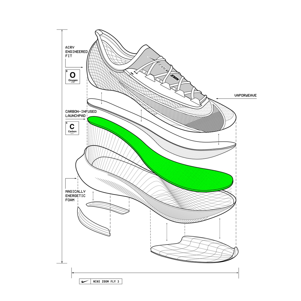 Lấy cảm hứng từ Vaporfly, Nike Zoom Fly 3 mang đến cho người chạy cự ly sự thoải mái và bền bỉ trong ngày. Sức mạnh của một tấm sợi carbon giúp bạn tiếp tục chạy hết dặm này sang dặm khác.
