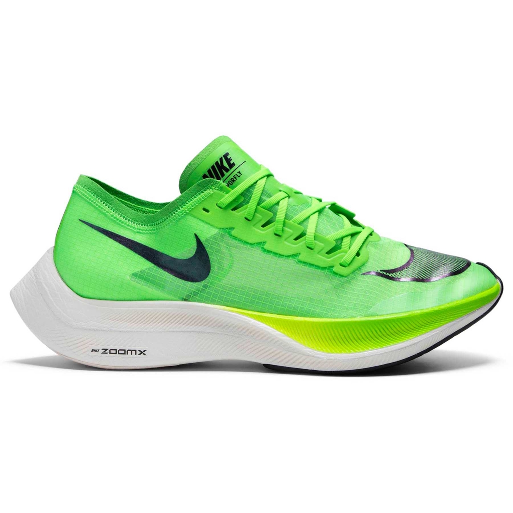 Ra mắt vào tháng 7 năm 2019, ZoomX Vaporfly NEXT% 'Electric Green' là một vận động viên chạy marathon với kết cấu đặt trọng lượng tối thiểu lên trên lớp đệm tăng lên. Được thiết kế với phần trên bằng lưới VaporWeave nhẹ, được thiết kế kỹ thuật và bọt ZoomX, giày thể thao hiệu suất của Nike có nghĩa là hấp thụ ít độ ẩm hơn và cung cấp thêm 4% năng lượng trở lại với mỗi cú đánh chân. Lực kéo của bàn chân trước được lấy cảm hứng từ những hiểu biết sâu sắc từ các vận động viên chạy đường dài hàng đầu Mo Farah, Geoffrey Kirui và Eliud Kipchoge.