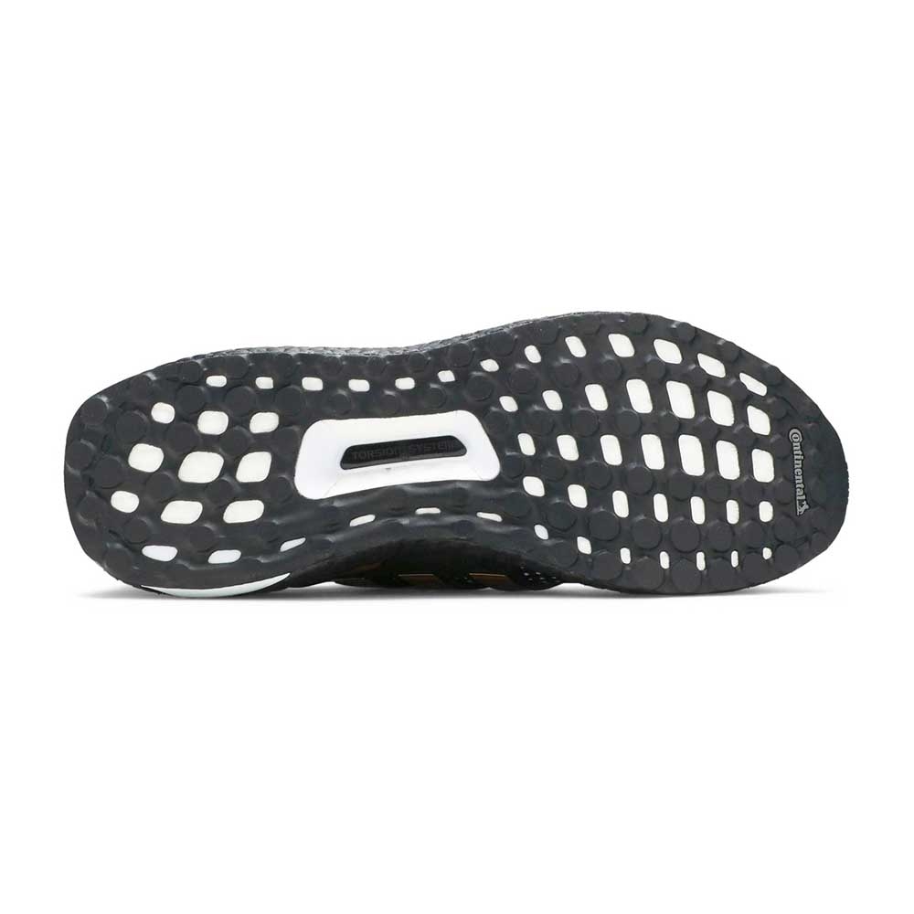Pat Mahomes x adidas UltraBoost DNA ‘Black Gold’ mang đến hai tông màu đặc biệt của người chạy đáp ứng được thiết kế cho tiền vệ siêu sao của NFL. Phần trên một mảnh được làm thủ công bằng Primeknit có hoa văn màu đen và trắng. Các chi tiết màu vàng kim loại đặt trên bộ đếm gót đúc và ba sọc đặc trưng được tích hợp vào lồng giữa bàn chân. Kết cấu nhẹ đặt trên đỉnh đế giữa Boost có chiều dài đầy đủ, sơn màu đen và được gia cố bằng đế ngoài cao su Continental phù hợp.