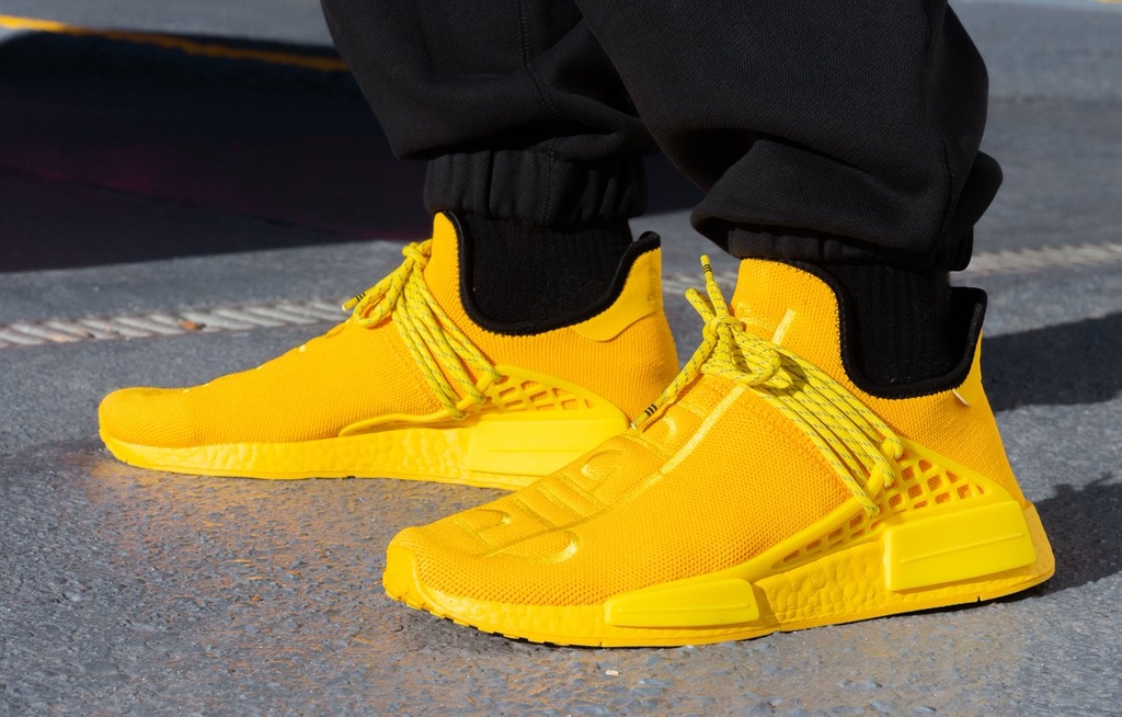 Là một phần của bộ sưu tập lớn hơn với nghệ sĩ đa diện, Pharrell x adidas NMD Human Race cập nhật phong cách thời trang với lớp hoàn thiện lén lút xuyên suốt phần đế giữa trên và đế dài đầy đủ của Primeknit. Cấu trúc tối giản được chỉ định với dây buộc bao quanh trang trí và một mấu gót bằng da tổng hợp được đánh dấu bằng adidas Trefoil. Được thêu trên con ma cà rồng, chữ Nhật Bản quá khổ đánh vần 'Human Race.'