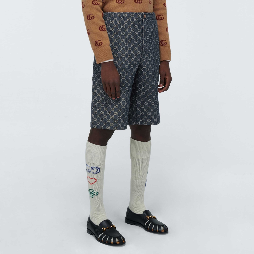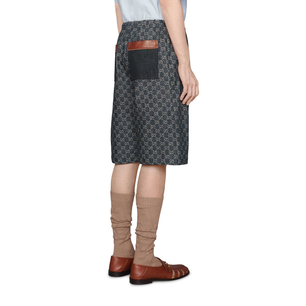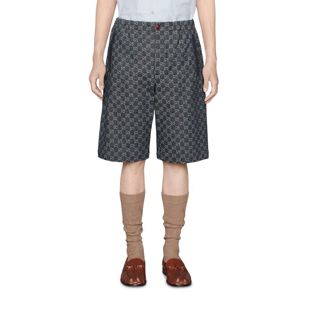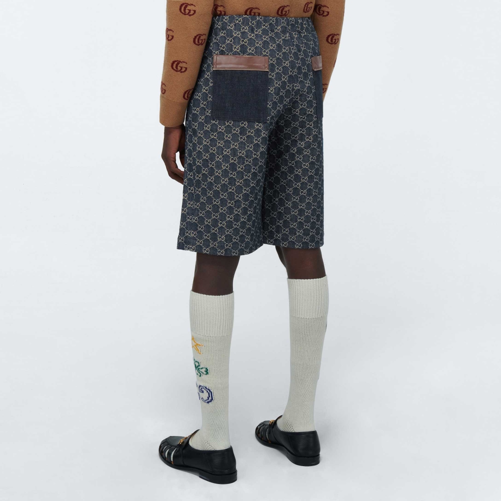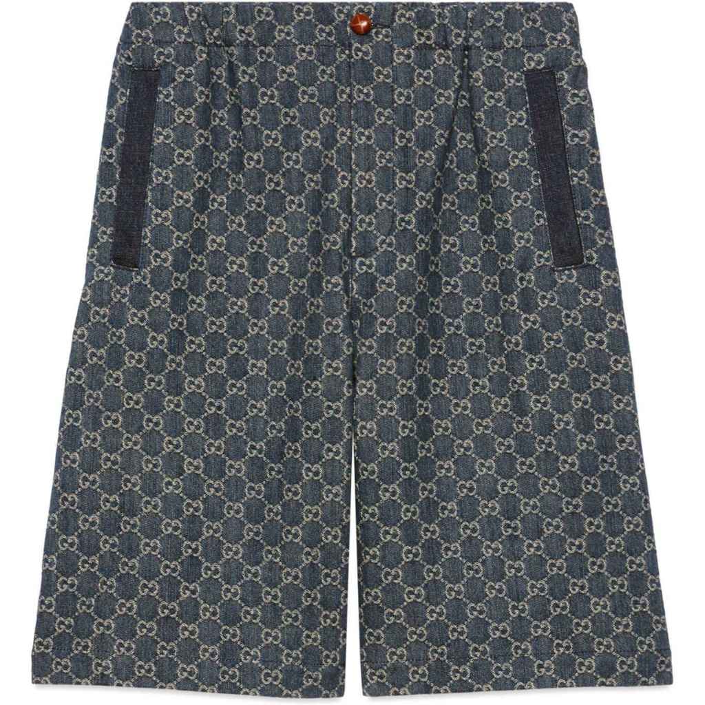 Giới thiệu mới cho bộ sưu tập Epilogue, những chiếc quần short jean này được làm thủ công từ vải denim GG jacquard hữu cơ, được giặt đặc biệt để tạo hiệu ứng cổ điển. Gucci khám phá những điểm mới trên loại vải đình đám, tái hiện nó với các thiết kế và kỹ thuật giặt khác nhau làm mờ ranh giới giữa cổ điển và đương đại. Tất cả bông hữu cơ còn sót lại từ quá trình cắt cho sản phẩm này sau đó được chuyển hóa thành vật liệu mới trong chương trình “Gucci Up”. Những bộ trang phục với cách mặc và phong cách linh hoạt sẽ ôm trọn mỗi người, là một phần trong tinh thần riêng của House.