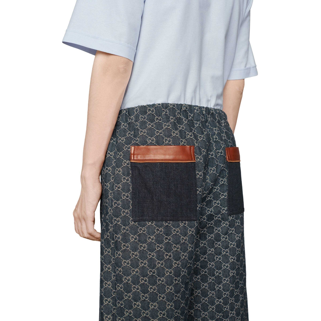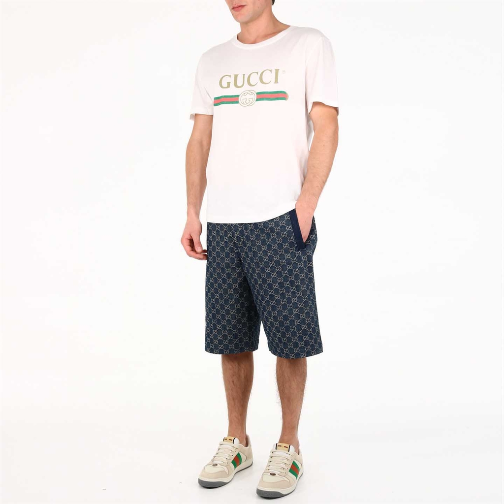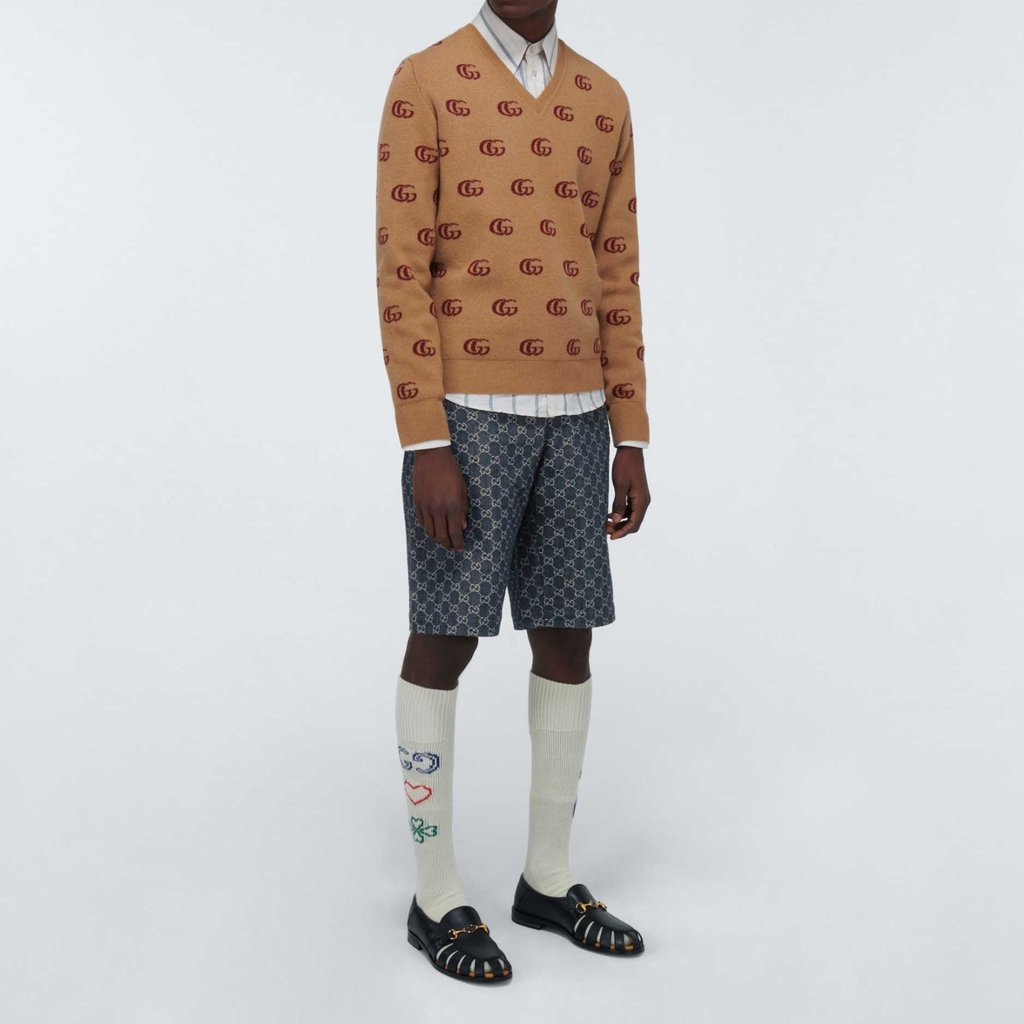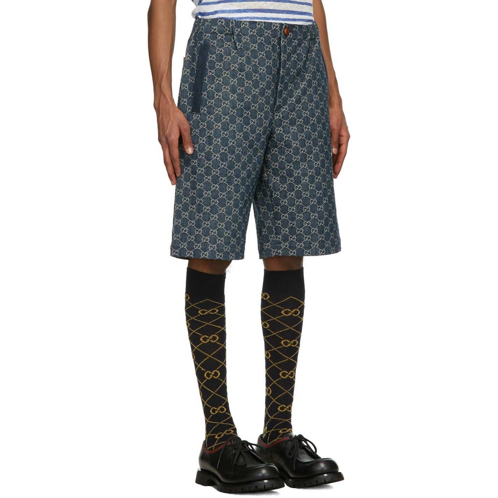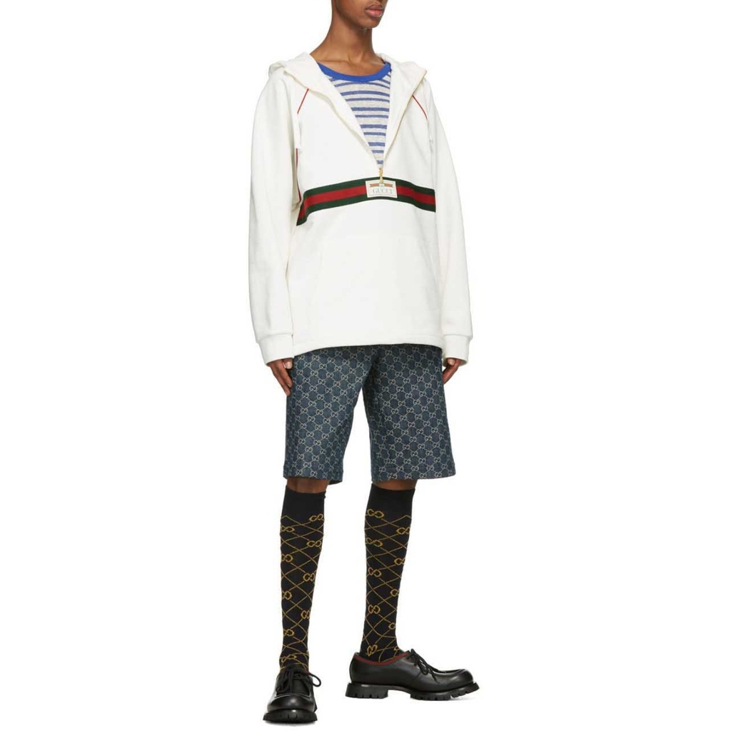 Giới thiệu mới cho bộ sưu tập Epilogue, những chiếc quần short jean này được làm thủ công từ vải denim GG jacquard hữu cơ, được giặt đặc biệt để tạo hiệu ứng cổ điển. Gucci khám phá những điểm mới trên loại vải đình đám, tái hiện nó với các thiết kế và kỹ thuật giặt khác nhau làm mờ ranh giới giữa cổ điển và đương đại. Tất cả bông hữu cơ còn sót lại từ quá trình cắt cho sản phẩm này sau đó được chuyển hóa thành vật liệu mới trong chương trình “Gucci Up”. Những bộ trang phục với cách mặc và phong cách linh hoạt sẽ ôm trọn mỗi người, là một phần trong tinh thần riêng của House.
