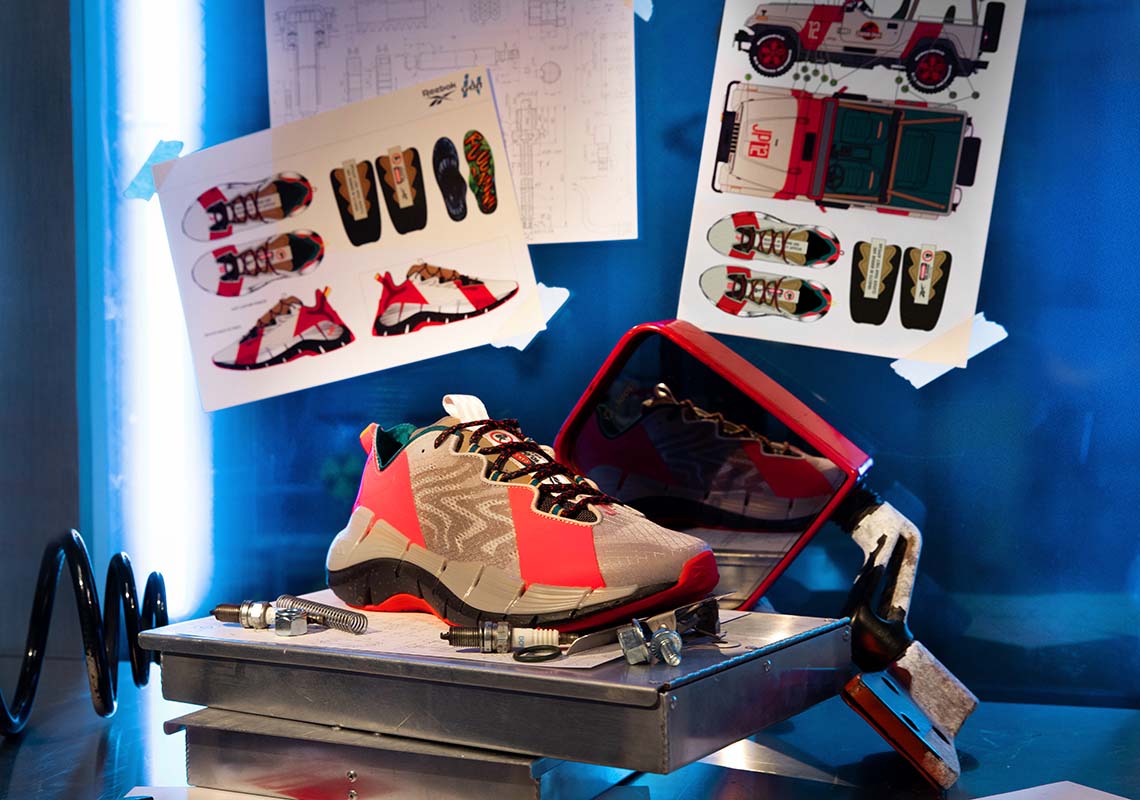 Các bộ phim đình đám hiện nay trở thành chủ đề hái ra tiền của những thương hiệu thời trang. Bắt theo xu thế này là sự hợp tác của Reebok với Universal Brand Development và Jurassic Park - bộ phim đình đám đã đưa những con khủng long chân thật lên màn ảnh. Lấy cảm hứng từ bộ phim gốc năm 1993, Reebok sử dụng những hình tượng nhân vật đem lại đấu ấn sâu sắc nhất cho bộ sưu tập lần này của mình.