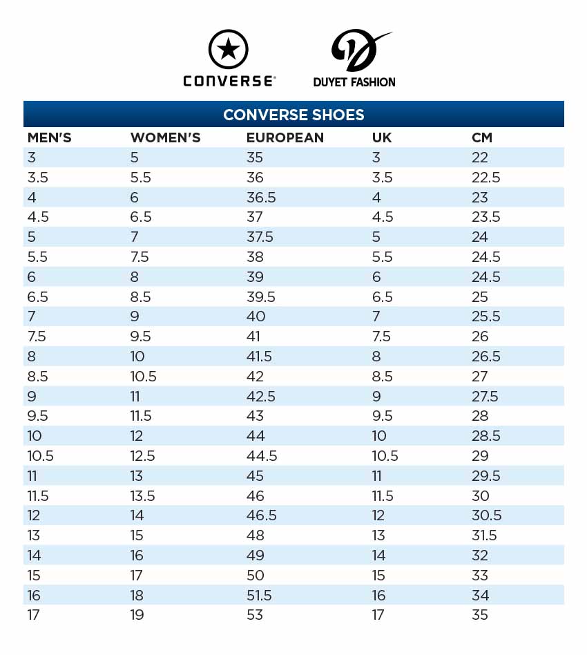 BẢNG SIZE GIÀY CONVERSE: