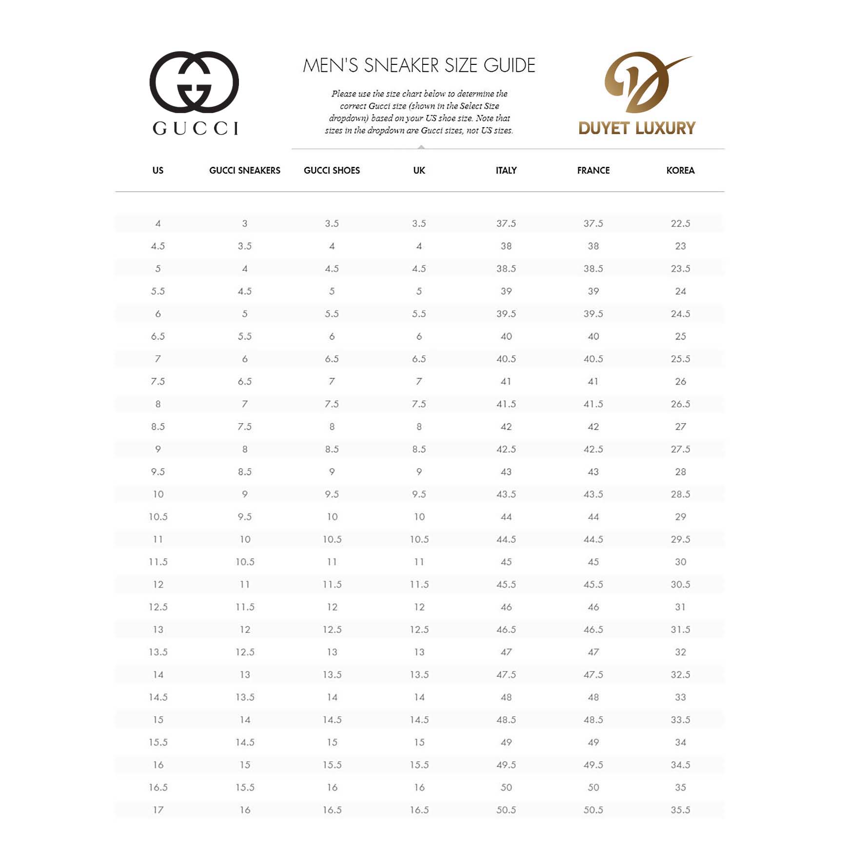 BẢNG SIZE GIÀY GUCCI: