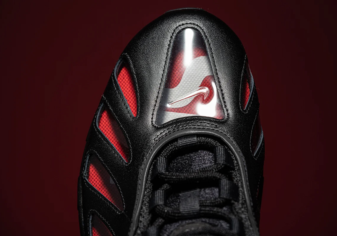 Với thiết kế rất đặc biệt, đôi giày như một chiếc lồng với các ô trong suốt nhìn xuyên vào trong lót giày màu đỏ tượng trưng của Supreme và tên thương hiệu. Ở cả gót và lưỡi gà đều được khắc tên Supreme - dòng chữ huyền thoại chỉ cần có trên bất cứ sản phẩm nào thì giá trị của nó cũng tăng lên gấp bội. Ngoài hình ảnh thiết kế ở trên với lớp da phủ màu đen, lần hợp tác này dự kiến sẽ có một phiên bản khác với lớp da có họa tiết Camo.