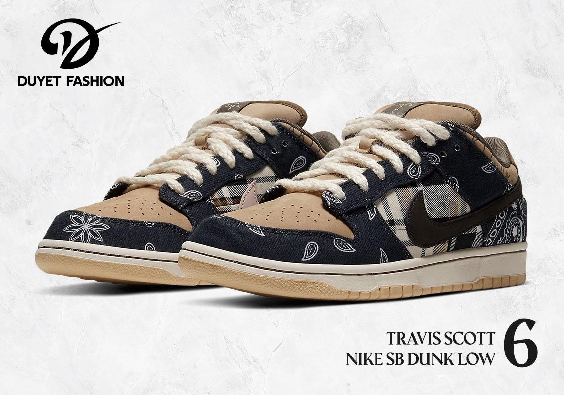 6. Travis Scott x Nike SB Dunk Low. Chỉ riêng tên của Travis Scott đã khiến bạn phải chú ý đúng không nào. Người nghệ sĩ không bao giờ thất bại trong việc đưa ra những siêu phẩm từ cảm hứng nghệ thuật của mình. Mặc dù năm 2020 chắc chắn là một năm trọng đại, đầy sự kiện đối với La Flame, nhưng đây là một tác phẩm nổi bật hơn phần còn lại: Nike SB Dunk Low của anh ấy. Với thiết kế kết cấu chắp vá và sử dụng các chi tiết một cách vui nhộn, sản phẩm này đã nâng tầm hiệu quả cho không chỉ bản thân Dunk mà còn cả các sự hợp tác nói chung. Đây là mẫu Dunk được các tín đồ thời trang order nhiều tại Duyet Fashion.