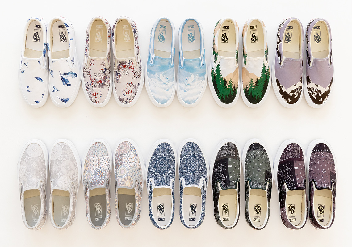 Khi KITH tròn mười tuổi, thương hiệu đã mời một số đối tác lâu năm của họ giúp tổ chức lễ kỷ niệm. Và vào ngày 24 tháng 5, Vault By Vans sẽ là người đầu tiên tham gia bữa tiệc với mười màu in khác nhau toàn bộ của Slip-On LX. Đến đúng thời điểm vào mùa Hè, sự hợp tác này mang đến tổng cộng mười sản phẩm, mỗi cặp đều khác biệt so với trước đó về cả bảng màu và cảm hứng. Hơn nữa, chi tiết ở đây là dựa theo những họa tiết cho thời trang đường phố, xuất hiện trong suốt danh mục quần áo, phụ kiện và thiết bị đeo liền kề kéo dài hàng thập kỷ của KITH. Các họa tiết Turban, tranh ghép kính vạn hoa và phong cảnh lấy cảm hứng từ thiên nhiên chỉ là một số trong số những thứ sẽ có sẵn, mỗi họa tiết chỉ là một phần của nhiều loại được đào sâu thêm bởi năm phong cách trẻ em bổ sung. Được gắn nhãn hiệu kỷ niệm với biểu tượng “KXTH” - chữ X là thể hiện cho 10 năm thành lập.