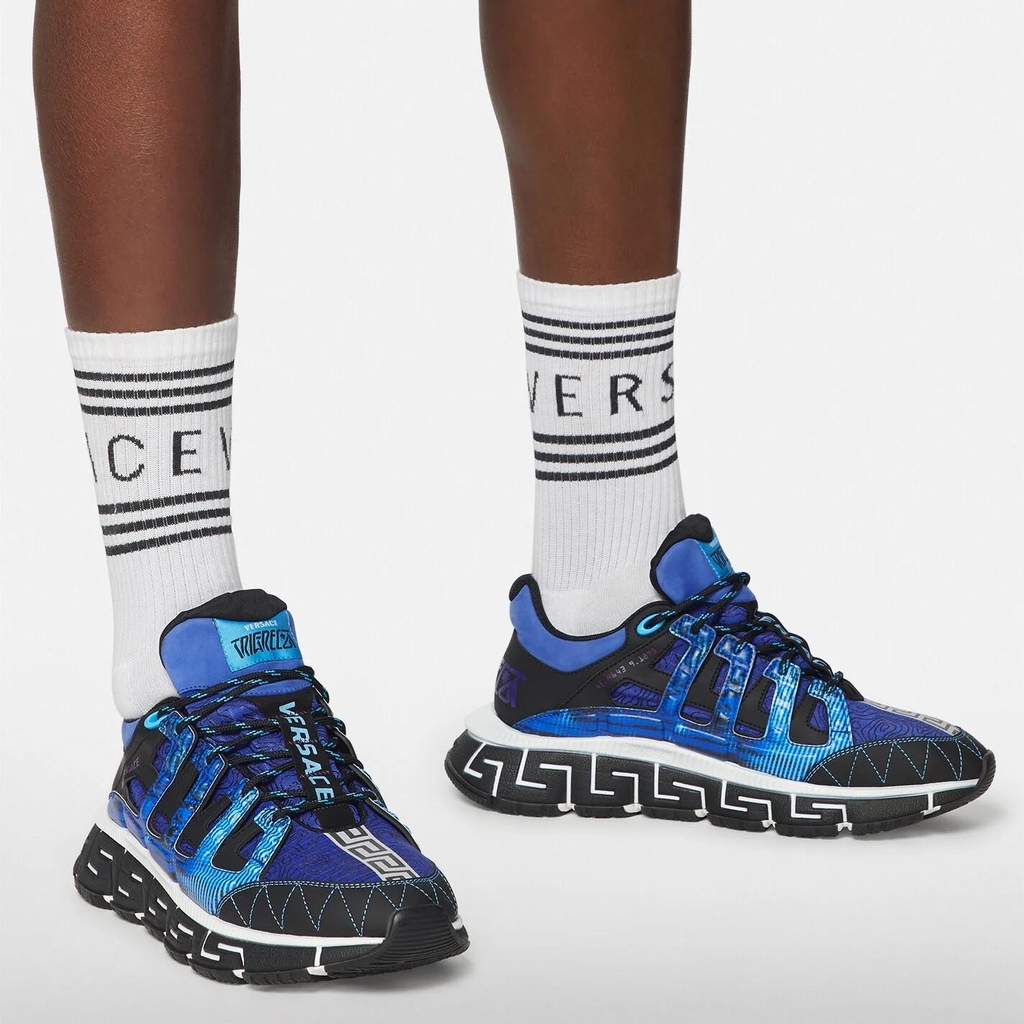 Sự bổ sung mới nhất cho gia đình giày thể thao được thèm muốn của Versace, Trigreca mang đến sự đổi mới cho thẩm mỹ không ngừng phát triển của thương hiệu. Tham khảo DNA của Versace, Trigreca có ba cách xử lý Greca nổi bật: đế giữa bên, giữa và dưới cùng của đế ngoài. Sự kết hợp này tạo ra 'Hệ thống đệm Greca'. Trong một cái gật đầu tinh tế với Milan, mặt trên có một bản in rời rạc về tọa độ của thành phố.